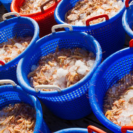 Meteen nadat de boten zijn afgemeerd aan de aanlegsteiger worden de Seabob-garnalen uitgeladen, machinaal gepeld in de primaire productie-unit van het bedrijf en - na sorteren en kwaliteitscontrole - onmiddellijk ingevroren. De tijd tussen het aanlanden van de garnalen en het invriezen ervan is niet langer dan 20 minuten, een groot voordeel voor de kwaliteit van deze lekkere garnalen. Na het invriezen worden de garnalen naar Europa getransporteerd voor verdere verwerking en verpakking bij de Europese Heiploeg bedrijven.