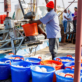 Meteen nadat de boten zijn afgemeerd aan de aanlegsteiger worden de Seabob-garnalen uitgeladen, machinaal gepeld in de primaire productie-unit van het bedrijf en - na sorteren en kwaliteitscontrole - onmiddellijk ingevroren. De tijd tussen het aanlanden van de garnalen en het invriezen ervan is niet langer dan 20 minuten, een groot voordeel voor de kwaliteit van deze lekkere garnalen. Na het invriezen worden de garnalen naar Europa getransporteerd voor verdere verwerking en verpakking bij de Europese Heiploeg bedrijven.
